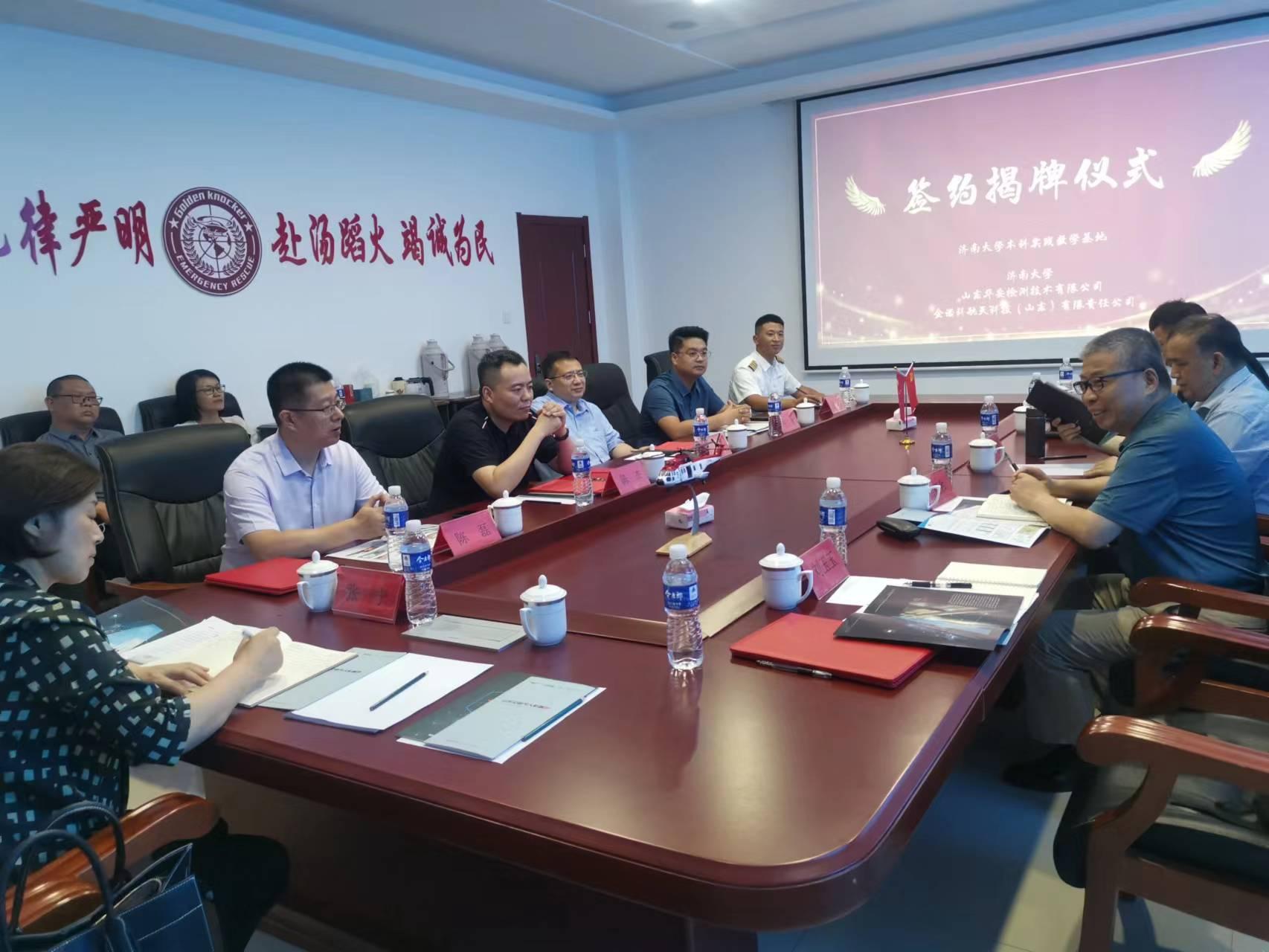 的学科建设、人才培养、师资配置与科研实力等情况,并对山东华安检测技术有限公司与金诺科航天科技有限责任公司在应急管理设备研发、培训设施、企业实力、发展理念等方面给予高度肯定。希望通过签订战略合作协议与共建实践教学基地,进一步围绕应急管理方向开展资源共享、人才交流、实习就业、科研合作,充分挖潜政、企、校三方优势,共促应急人才培养与供给的有效衔接。仪式结束后,与会人员参观了金诺科无人机调度运营中心与智慧检测实验室,并就人才培养、学生实习、实践教学等方面展开座谈交流。