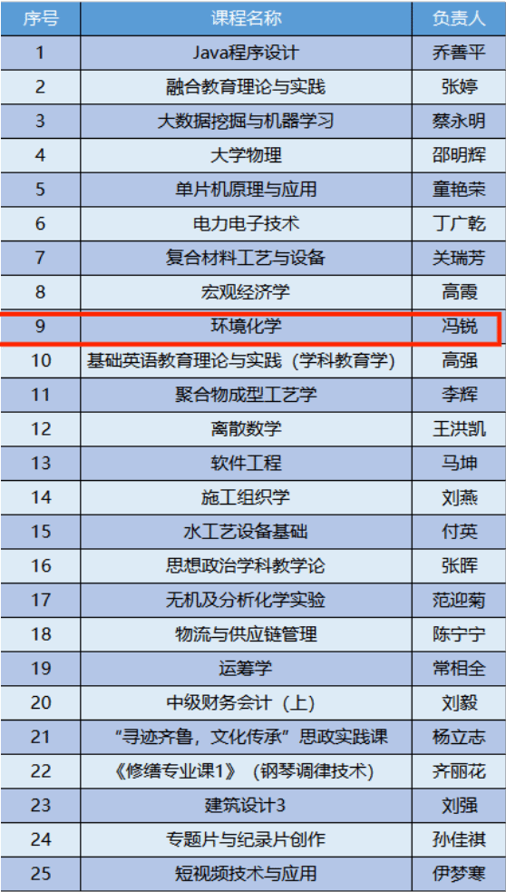 冯锐老师的《环境化学》在线上线下混合式一流课程18门之列,光荣入选山东省一流本科课程。
