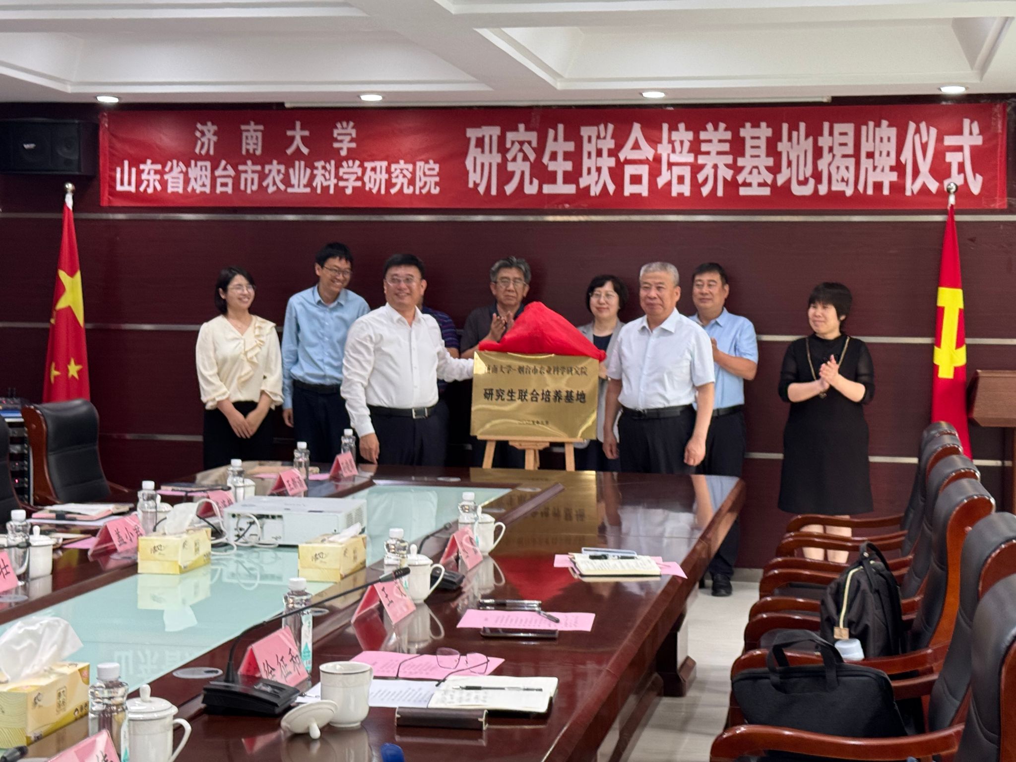 研究生联合培养基地”揭牌仪式。烟台市农业农村局党组成员、副局长刘倩,烟台市农科院党委书记吴吉壮、党委副书记郭绪良等出席活动。