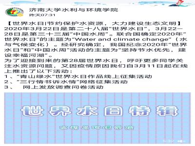 的学子们通过制作宣传海报、拍摄照片和视频等方式积极响应,足不出户就了解到节水和水环境保护知识,体现出他们对水环境保护事业的关心。