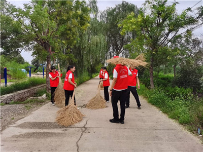 一早队员们来到曹家寨村,在相关负责人的带领下领取清扫工具,队员们在炎热的天气下,手持扫帚、铁锹等清洁工具,将落叶、杂草、纸屑等垃圾进行全面细致的清扫,并协助工作人员排查清理卫生死角。大家分工协作,认真清扫大街小巷垃圾。对桃园现场教学基地内的杂草统一进行清除,以人工除草方式清除绿化带、围墙的杂草,清理完成后,对垃圾进行统一清运,充分发扬了不怕脏、不怕苦、不怕累的工作作风。经过队员们的不断努力,辖区街面干净整洁,引得不少市民纷纷点赞。随后队员们向市民宣传环保知识,帮助市民增强环保意识,为建设美丽城市尽一份力。