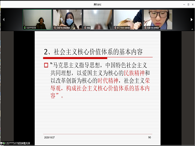 通过腾讯会议开展“模范践行社会主义核心价值观,抵制‘渗透’” 为主题的党课讲座,教育与心理科学学院党委书记牛瑞斌主讲。