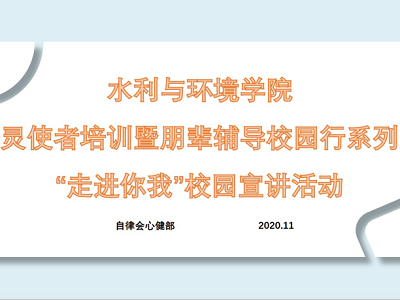 开展心灵使者培训暨朋辈辅导校园行系列之“走进你我”校园宣讲活动。本次宣讲由教育与心理科学学院景晓燕同学主讲。