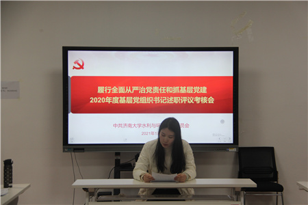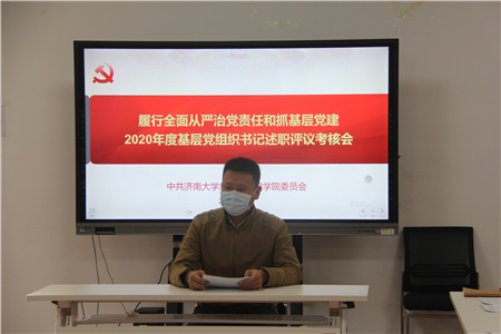 2020年度党支部书记履行全面从严治党主体责任和抓基层党建述职评议考核会在学院会议室召开。学院党委班子成员、各党支部书记、部分教师代表参加会议,会议由学院党委副书记张良红主持。