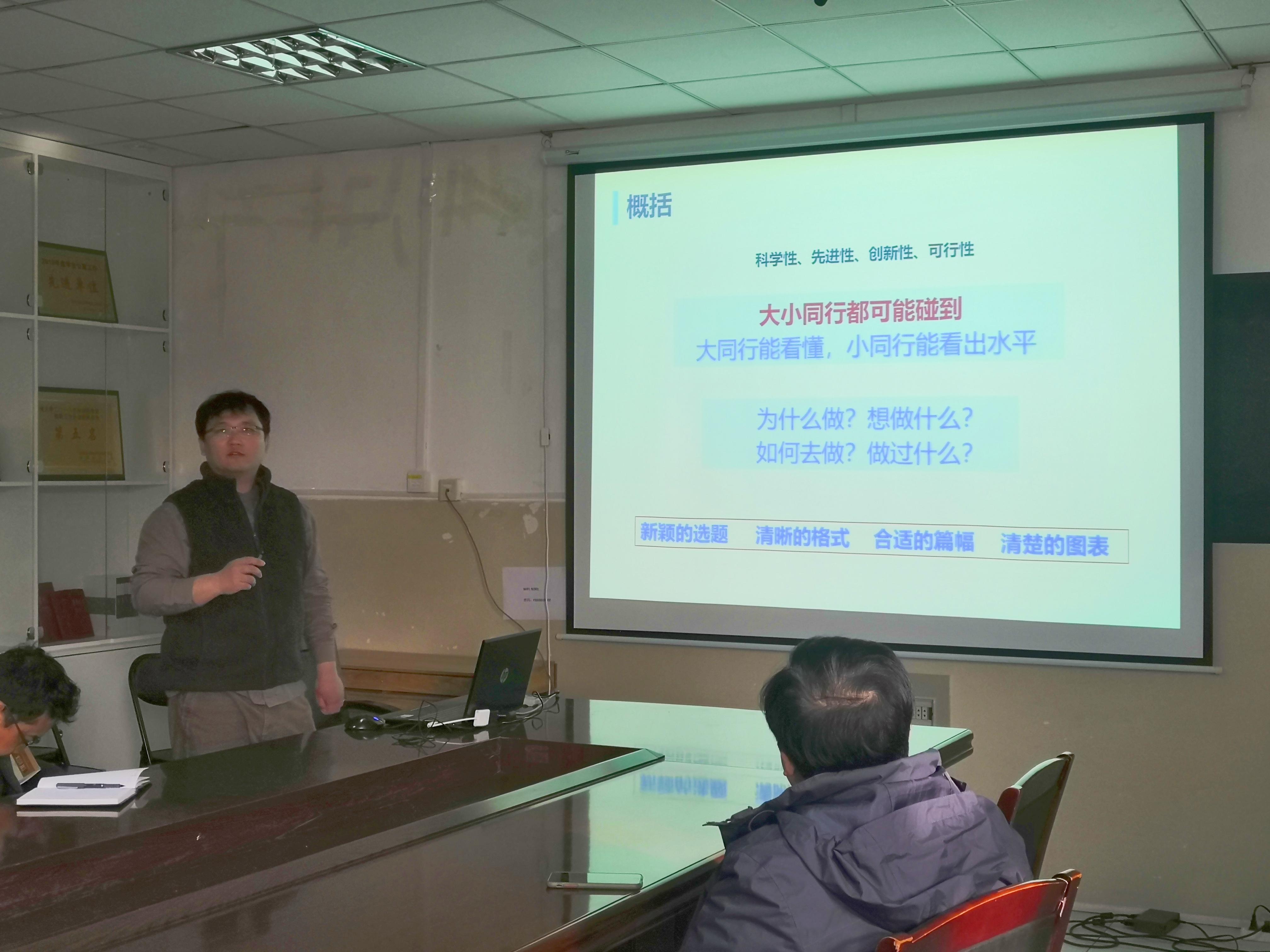 青年教师张睿、宋雯分别分享国家自然科学基金申报经验,学院班子成员、青年骨干教师参会交流,王仲鹏副院长主持了会议。