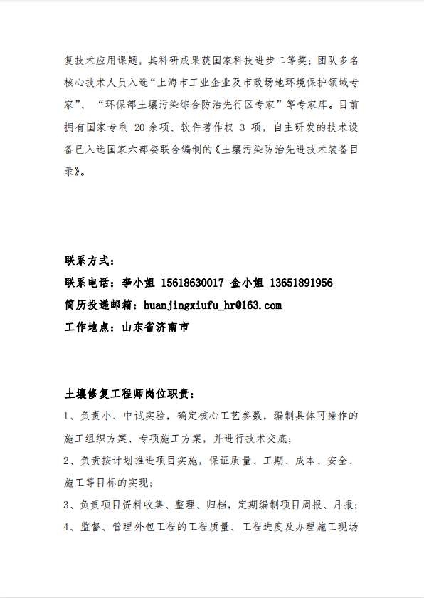 上海城投上境生态修复科技有限公司招聘信息