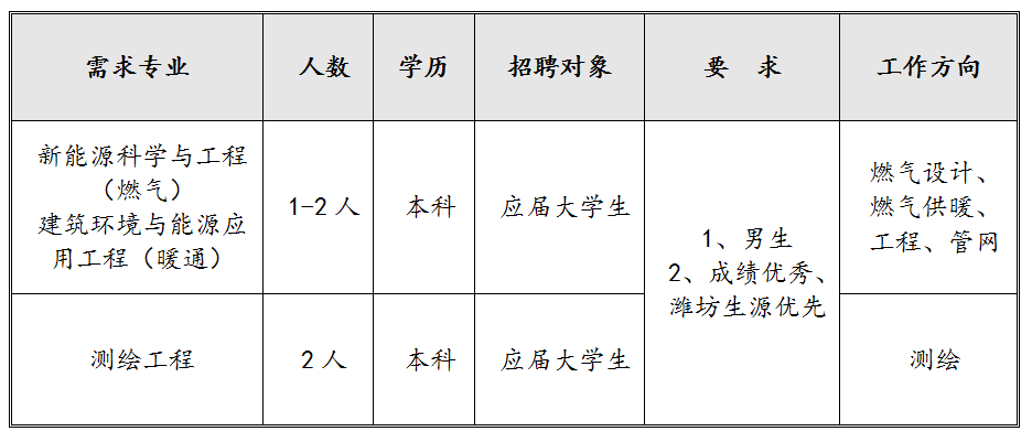 2017年潍坊港华招聘计划