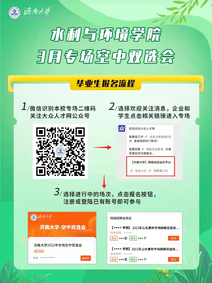 为贯彻落实党中央、国务院“稳就业”“保就业”决策部署,根据山东省人社厅和教育厅对高校毕业生就业工作的相关要求,同时为做好学校疫情防控常态化条件下校园招聘工作,学院联合大众人才网就业平台组织持续性、常态化的就业双选会系列活动,为用人单位招聘和学院应、往届毕业生稳定就业拓路护航,诚挚邀请您参会。