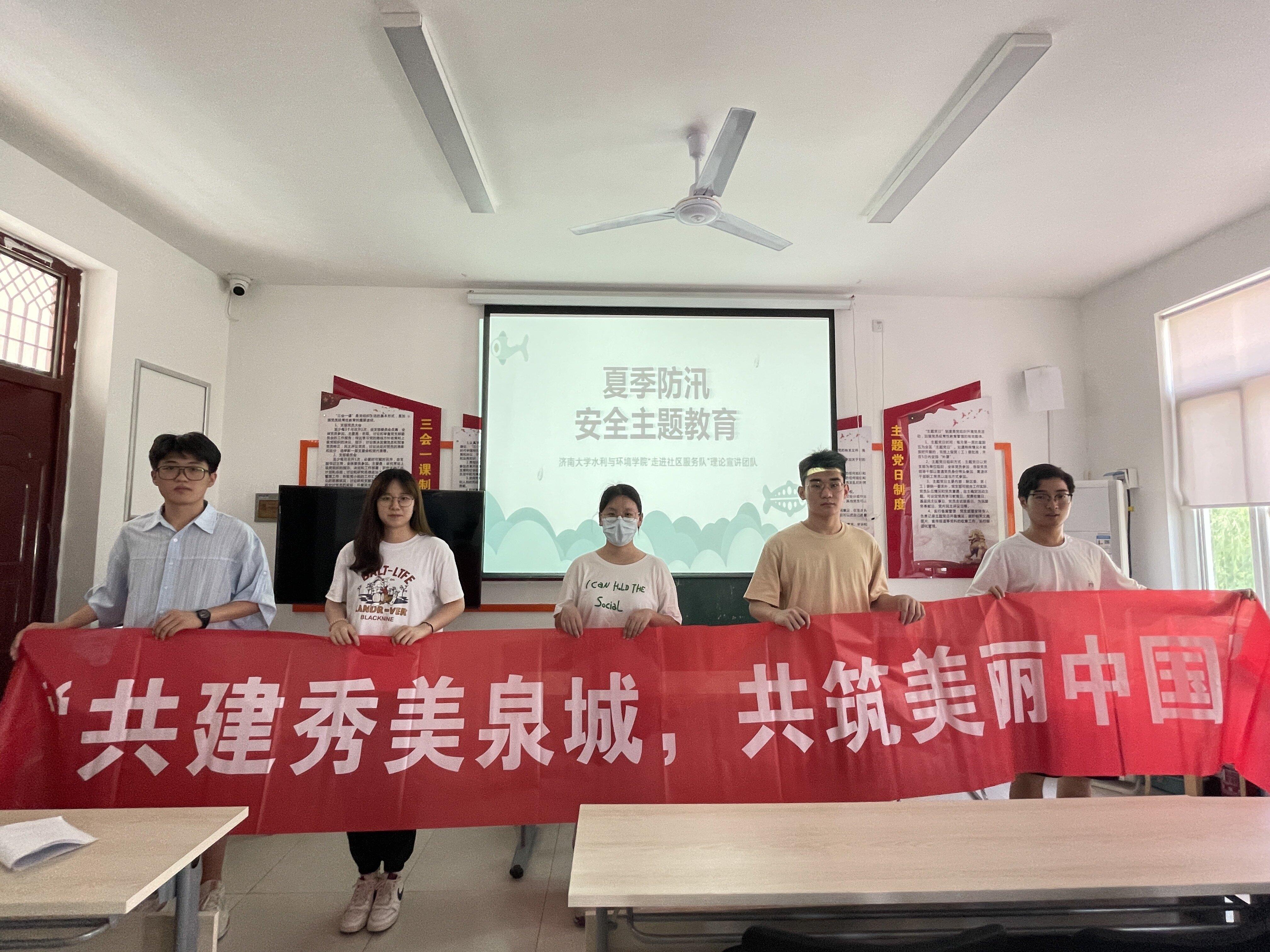 走进社区服务队成员岳智贤、张可言、高昱树、张雨硕、刘合镇于暑期“三下乡”活动期间在洪家楼街道鑫达社区开展相关的实践活动。