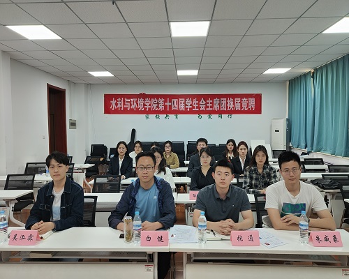 于5月22日在第九教学楼105教室召开第十四届学生会主席团竞聘面试。学生会指导老师团委书记白健,生涯发展部指导老师张通出席会议,第十三届学生会主席团成员参与本次会议。