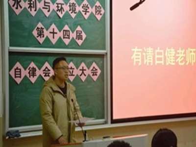 自律会成立视频,视频中展现出各位自律会成员的精神风貌,将自律会各部门的工作历程及成果展现得淋漓尽致。视频结束后,白健老师发表了讲话。他首先对新干事的加入表示祝贺并强调了自律会的作用及重要性,希望自律会全体成员能秉承校训、牢记宗旨,强化纪律观念,发挥先锋模范作用。同时白老师还寄语同学们要积极响应学院的各项工作,全心全意为同学们服务,做到与时俱进,提高工作水平。白老师的讲话为自律会的未来工作发展指引了方向,赢得了同学们热烈的掌声。