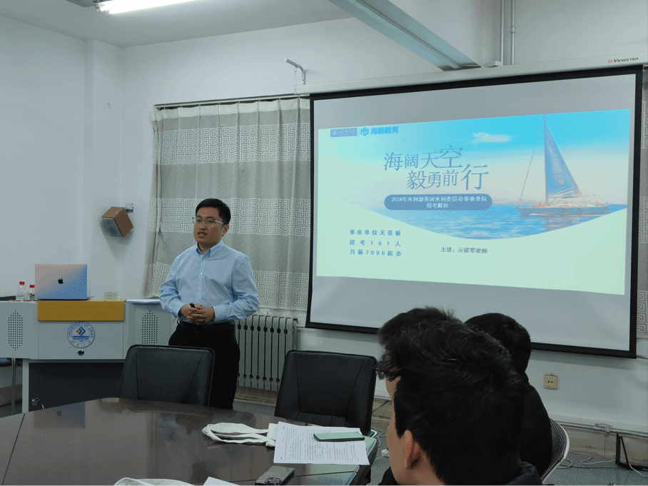 邀请海毅教育在我校就业指导中心402为学院学生进行了水利部黄河水利委员会事业单位招考的解析讲解,为同学们详细讲解了报考条件、备考事项、面试流程以及单位情况等一系列招考信息。