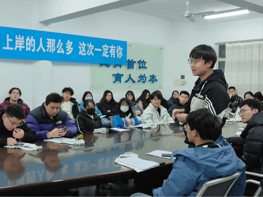 本次会议邀请了毕业于山东师范大学物电学院的亓建军老师进行招考信息的讲解与解析。会议伊始,亓老师为大家讲解了招考笔试跟面试的涉及科目,并详细介绍了各个科目的基本情况。过后亓老师进行了考情分析,为大家讲解历年考情和近年来的考情趋势,包括报考条件、单位待遇以及未来发展趋势等。最后亓老师为大家带来了几道历年考试真题,并与大家一起解答,带领同学们感受答题思路。同学们积极与老师互动,提出了他们对于招考问题的疑惑,亓老师为同学们一一解答。在与老师一起尝试解答历年真题时,同学们认真思考,积极讨论,会议氛围非常活跃。