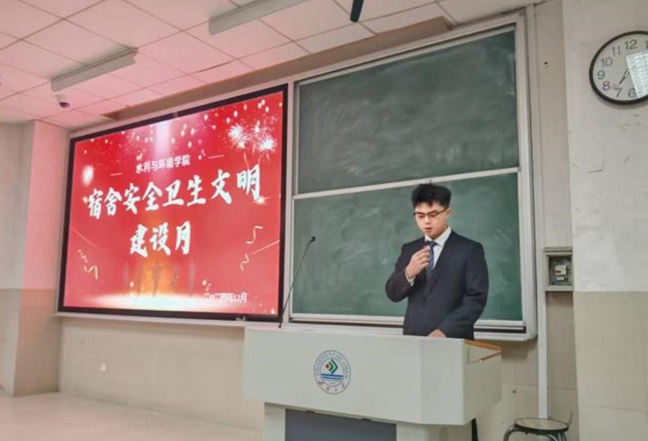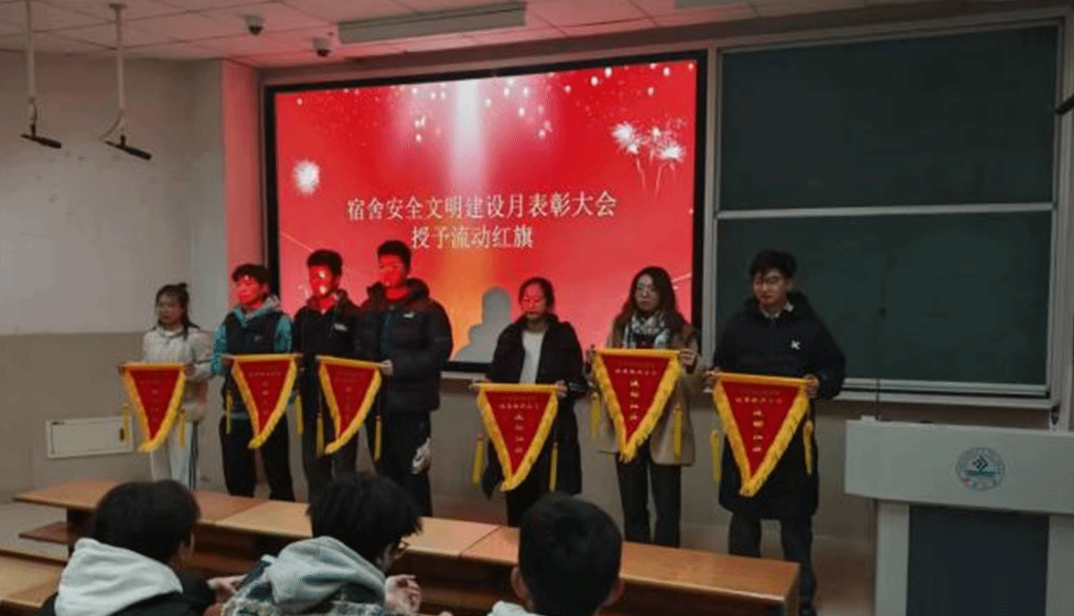 于11教1102召开宿舍安全卫生文明建设月表彰大会,对在本次建设月中表现优异的宿舍进行表彰与鼓励,进一步推动宿舍整体文明风貌的提升。