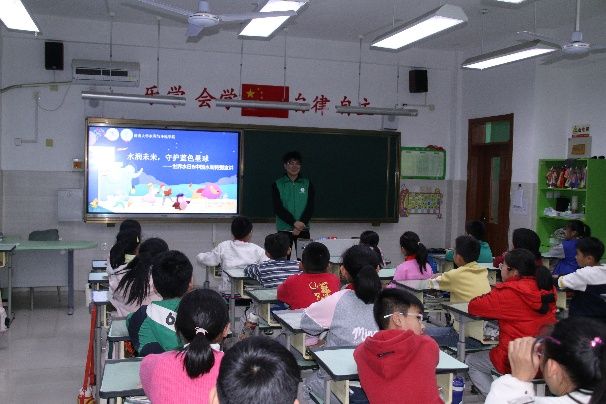 在节水倡导环节,志愿者讲解了节水行动在经济、生态、社会层面的重要意义,还分享了淘米水洗菜、洗脸水冲厕所、及时关水龙头等家庭节水小妙招,并倡议同学们在“世界水日”和“中国水周”期间积极行动,保护水资源。