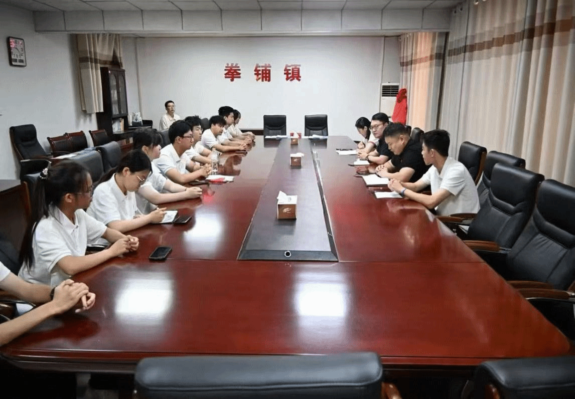 7月14日,团队成员抵达拳铺镇。首先,团队成员来到了拳铺镇政府会议室,迅速与当地村委会对接,对实践活动的具体安排进行部署,明确活动安排,本次对接工作为后续活动的顺利进行创造了良好的条件,提供了坚实的保障。