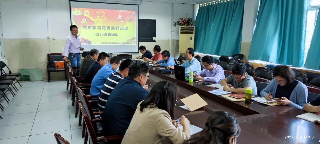 水利工程系党支部于2021年5月18日在9教301室召开党支部全体党员大会,开展第五次党史学习教育。会议由水利工程系党支部书记边振主持。