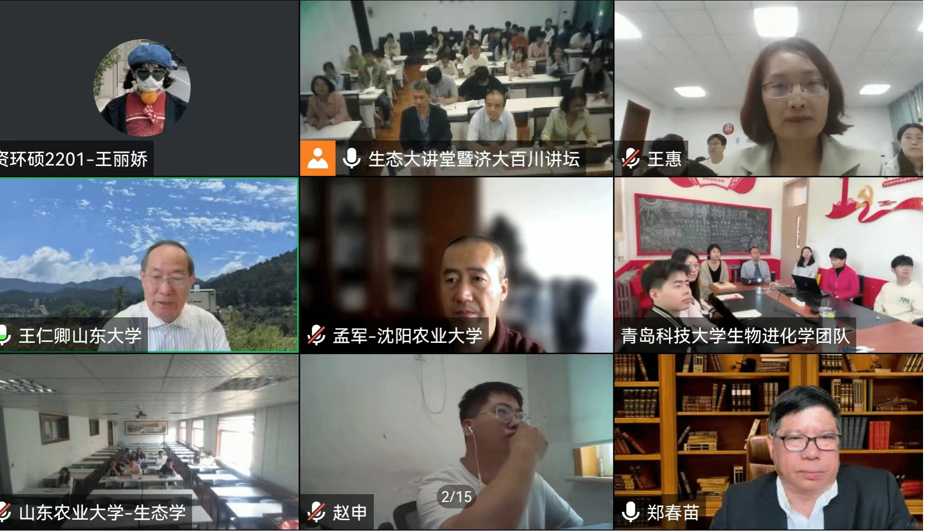 院长胡晓农教授和山东省生态学会王仁卿理事长分别进行致辞,二百余名师生通过线上或线下方式参与讲坛活动。